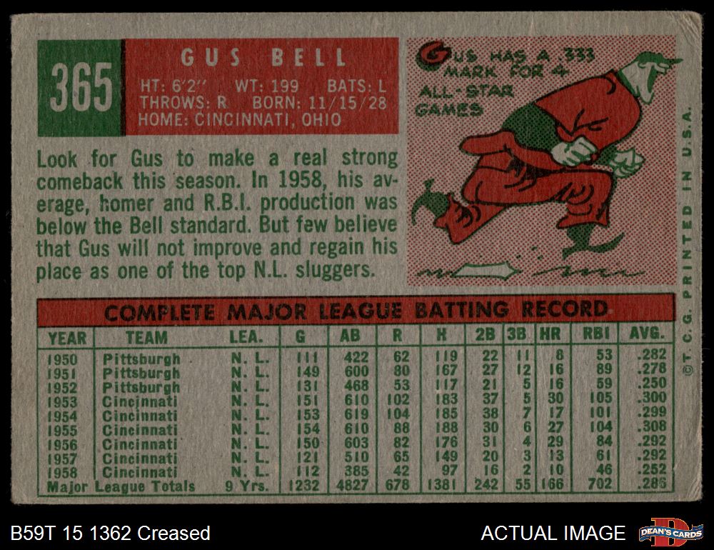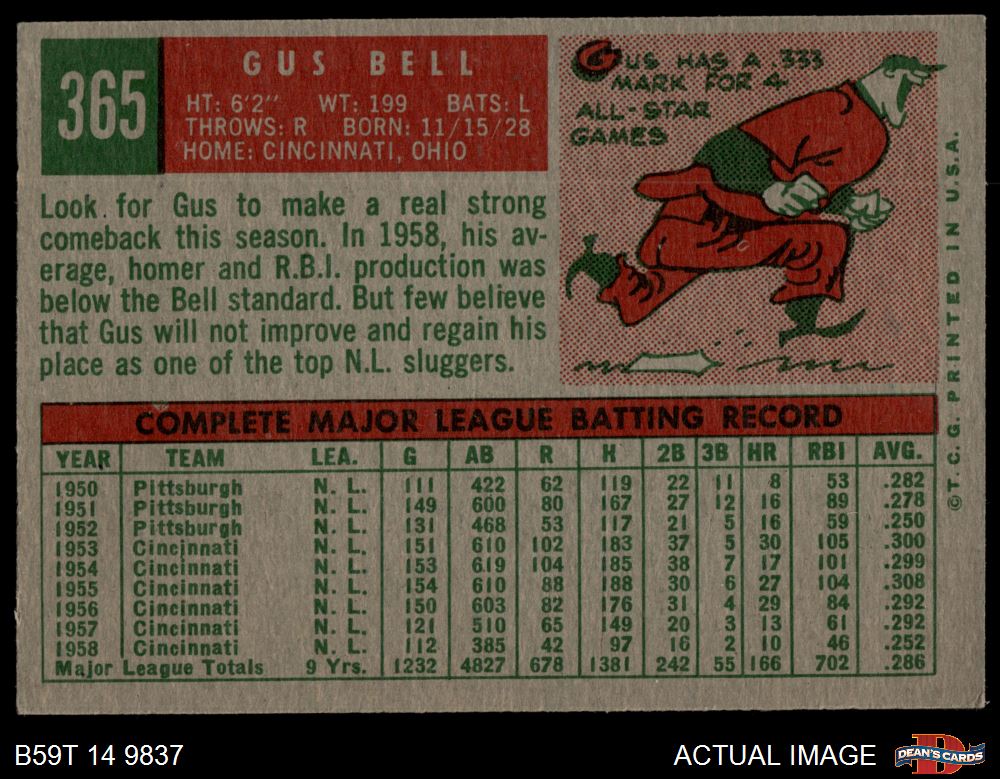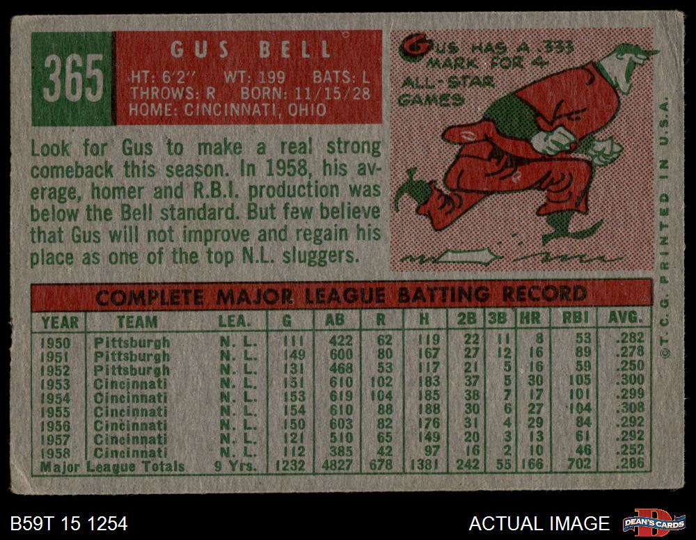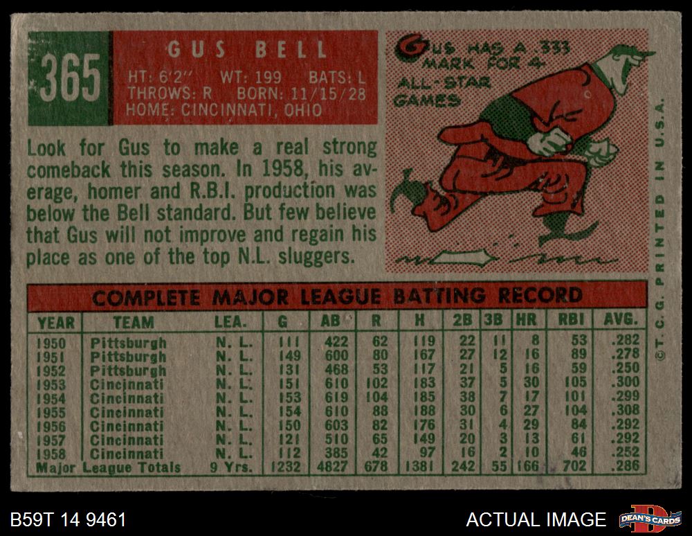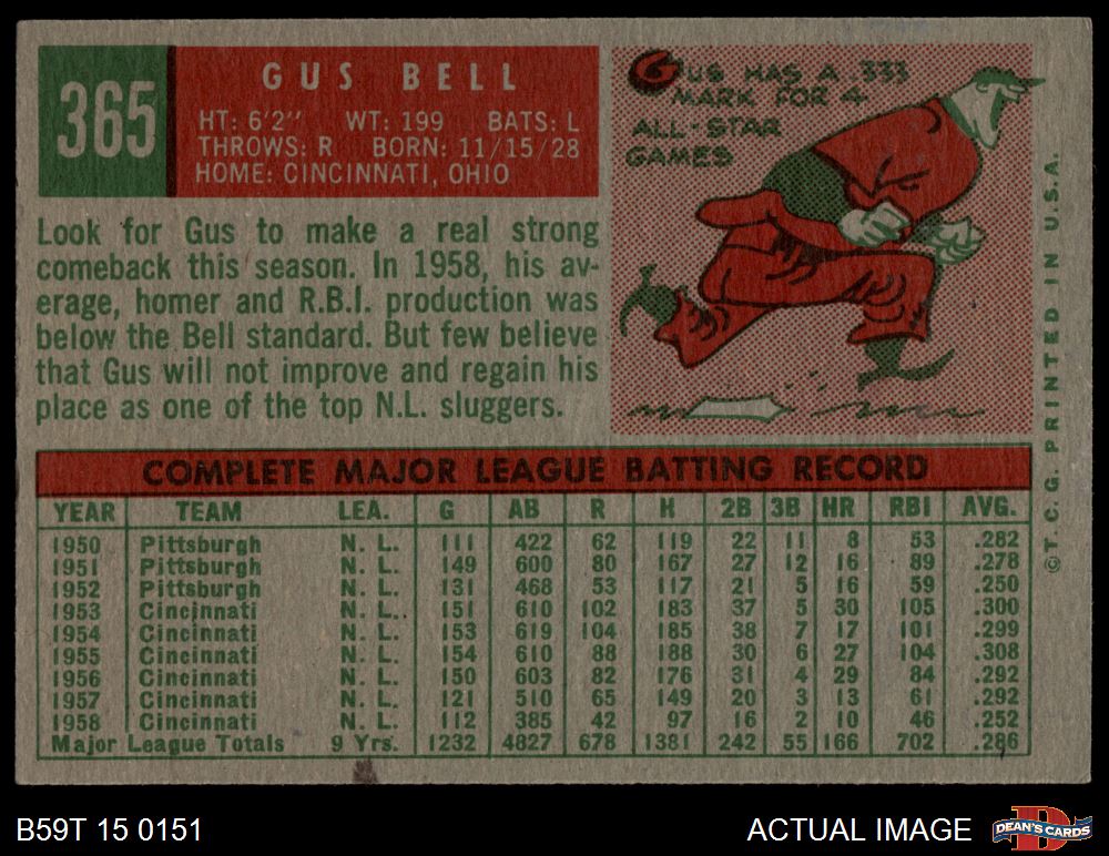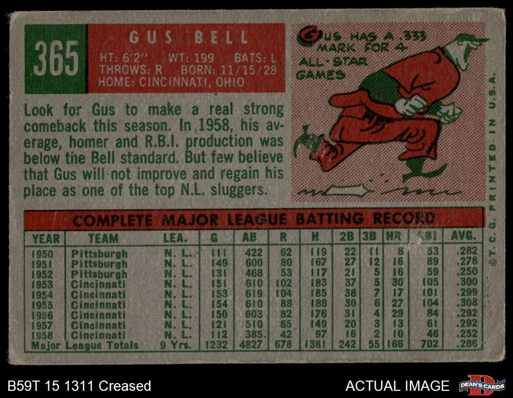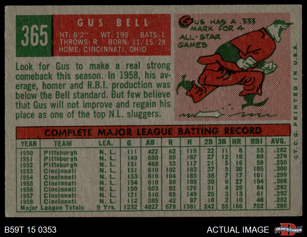 1959 Topps #365 Gus Bell