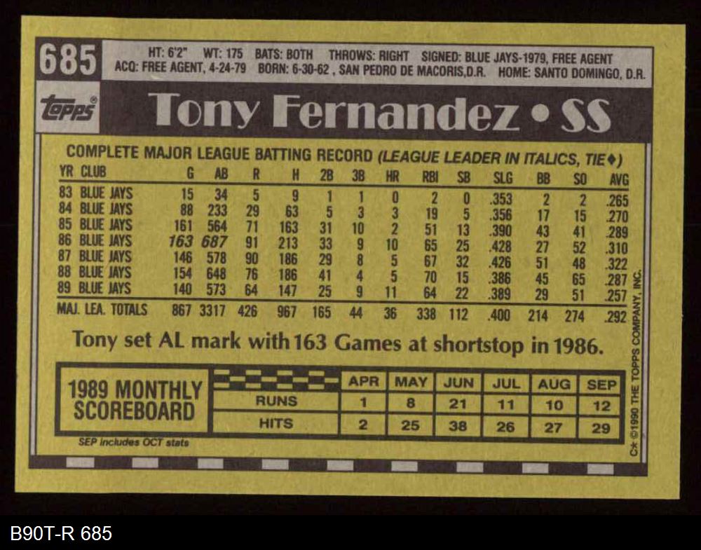 1990 Topps #685 Tony Fernandez 8 - NM/MT