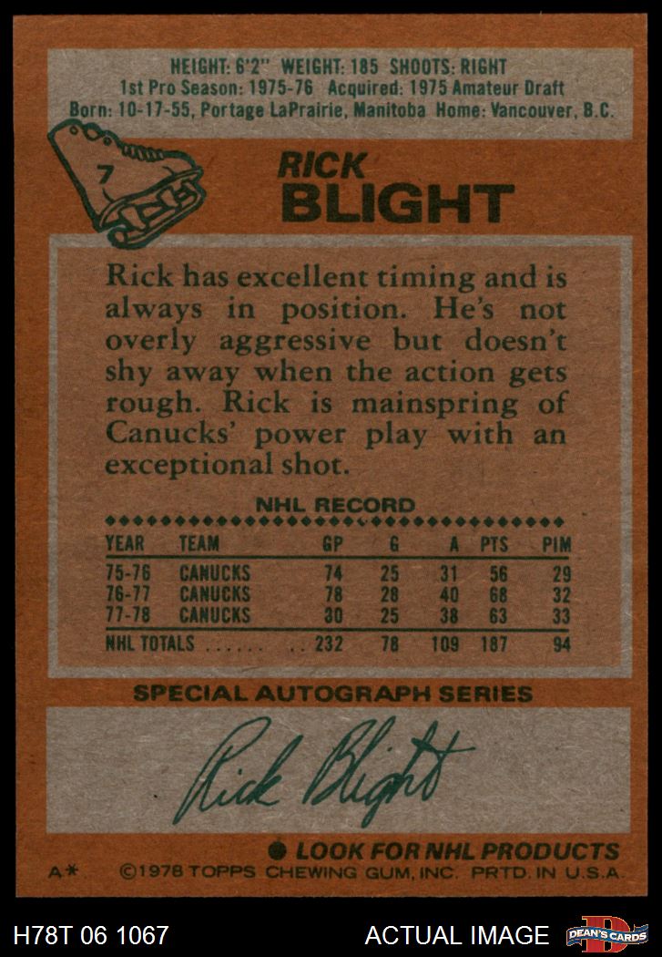 1978 Topps #7 Rick Blight 6 - EX/MT
