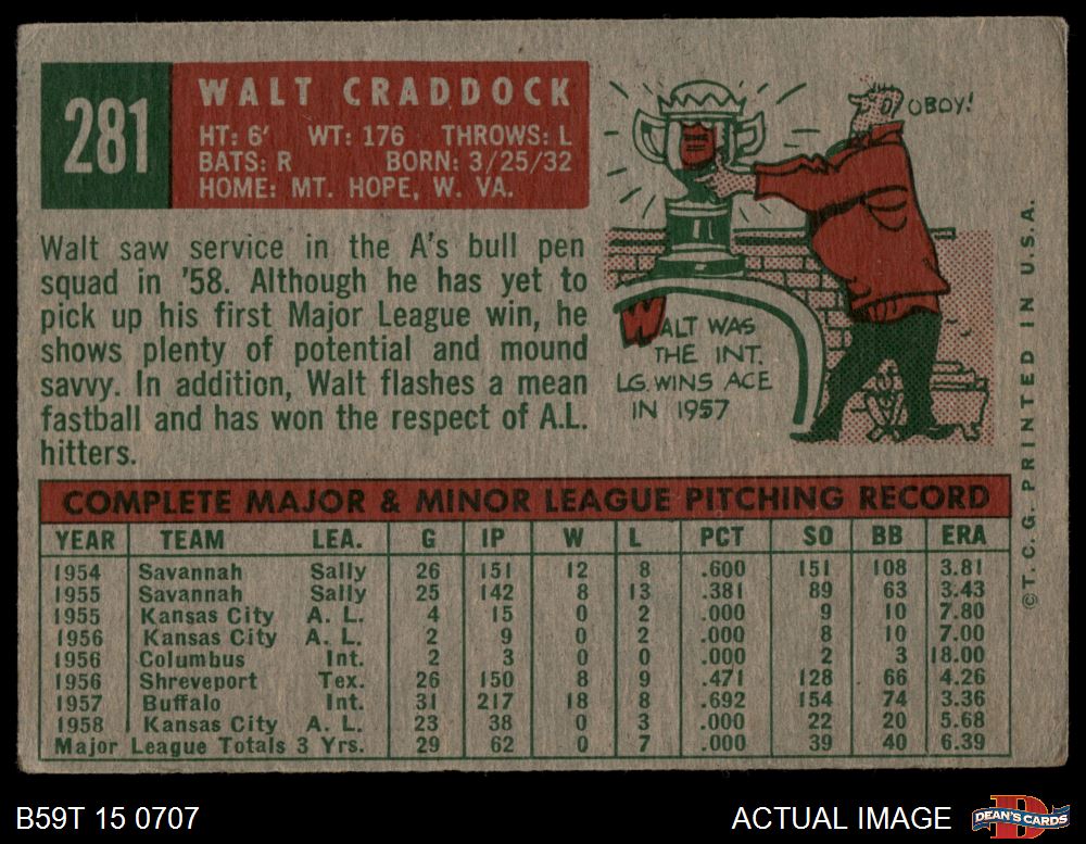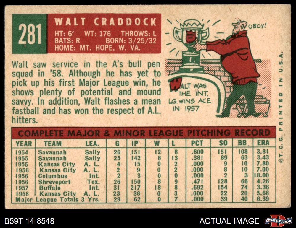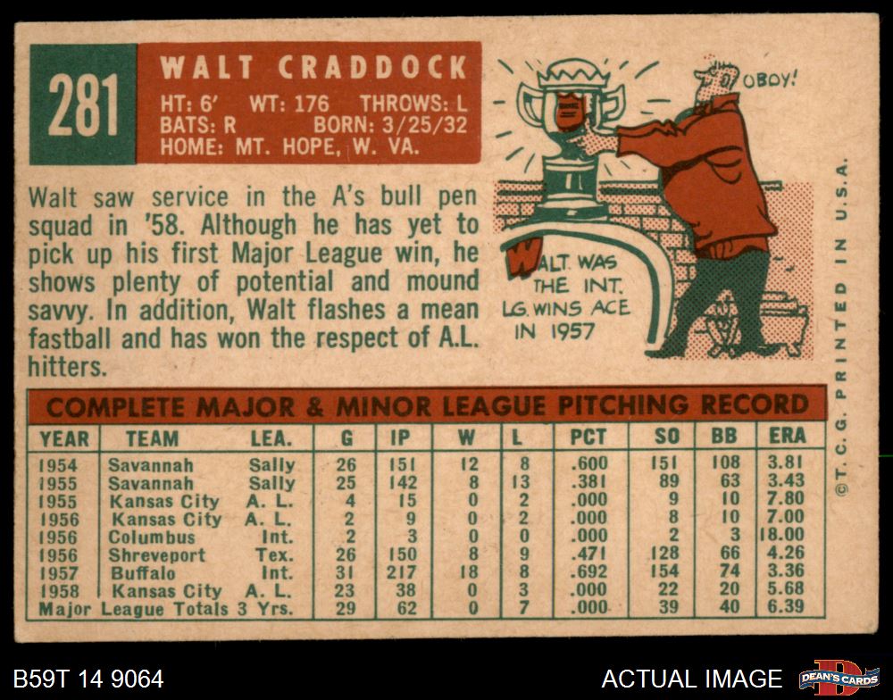 1959 Topps #281 Walt Craddock