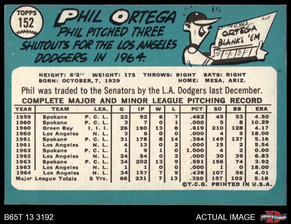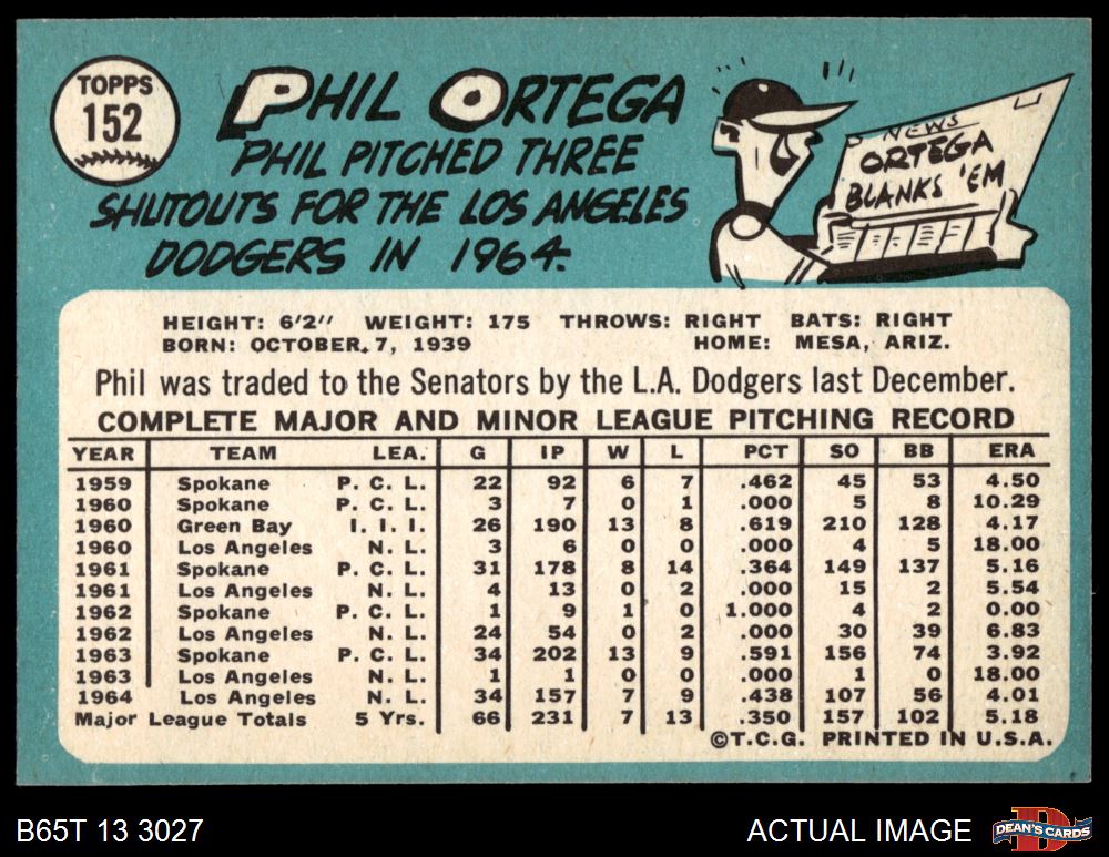 1965 Topps #152 Phil Ortega