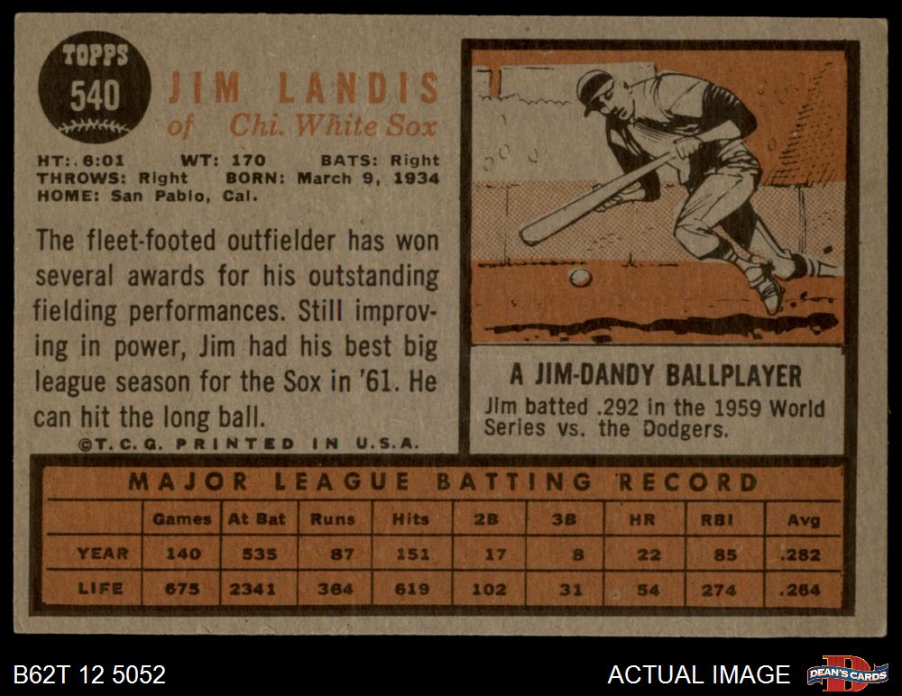1962 Topps #540 Jim Landis