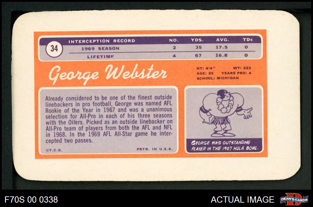1970 Topps Super #34 George Webster 6 - EX/MT