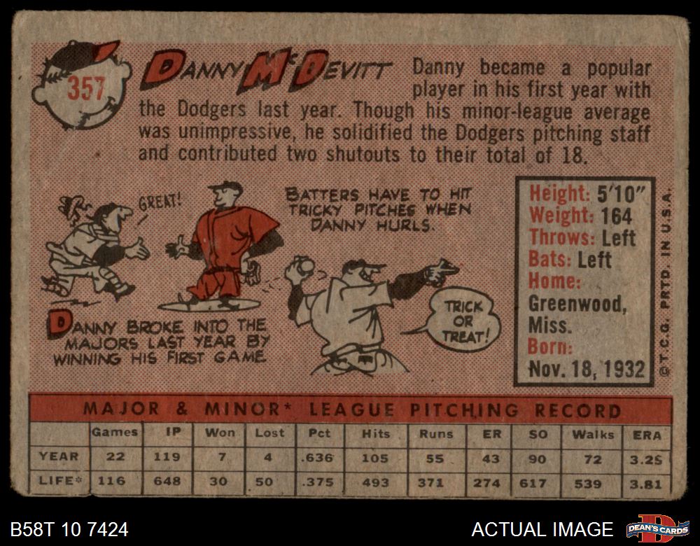 1958 Topps #357 Danny McDevitt 1.5 - FAIR