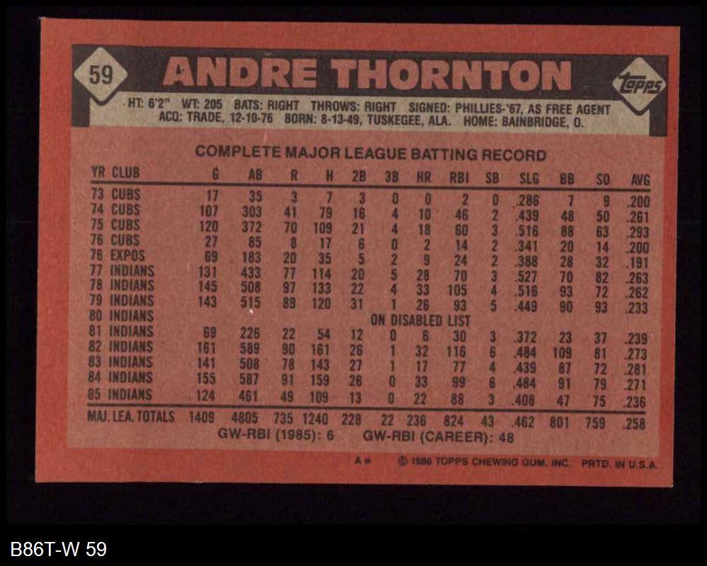 1986 Topps #59 Andre Thornton