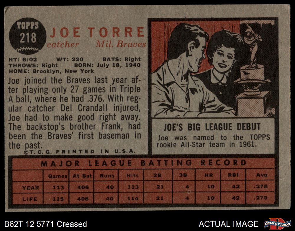 1962 Topps #218 Joe Torre 2 - GOOD