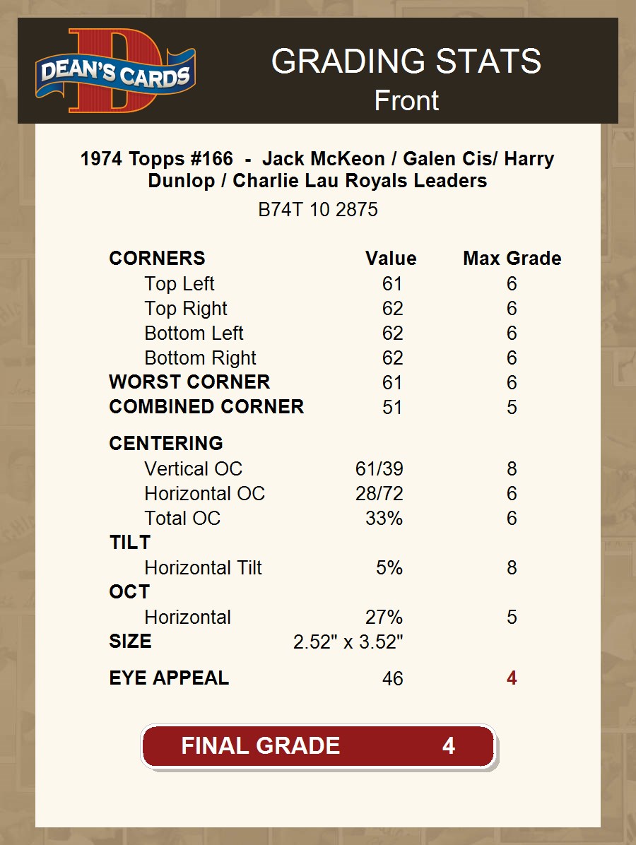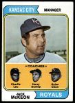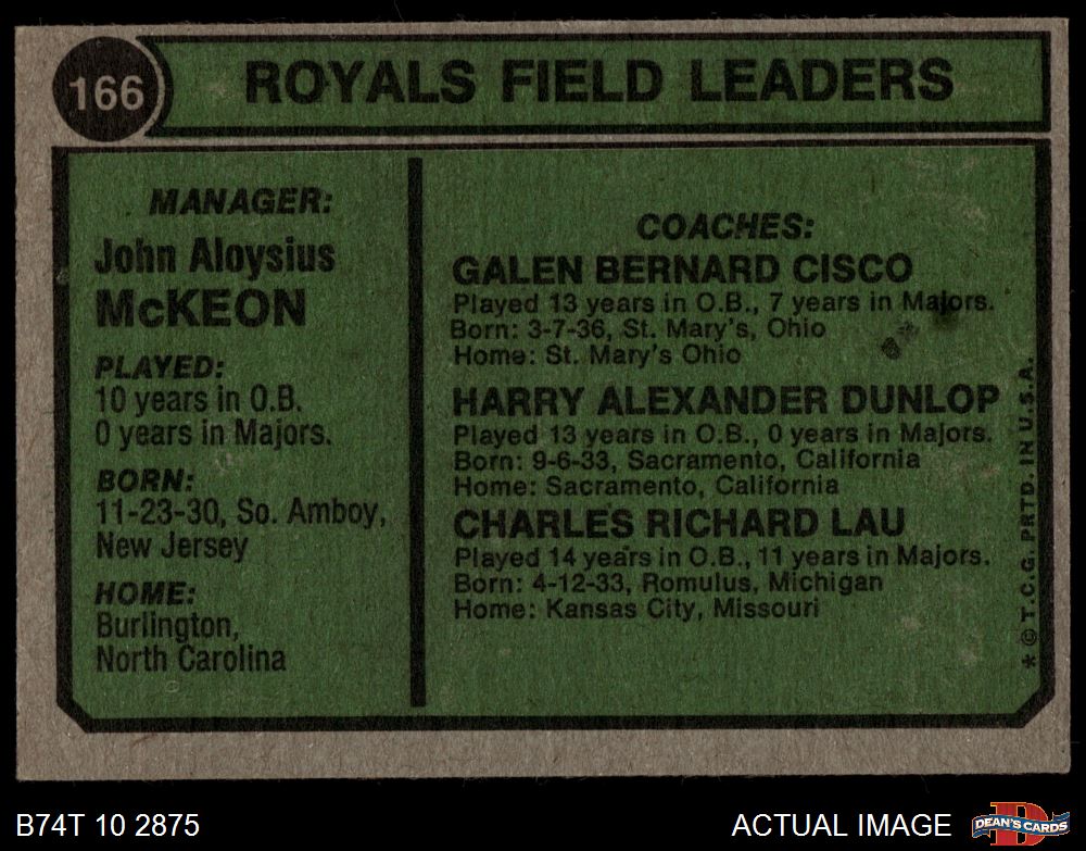 1974 Topps #166 - Jack McKeon / Galen Cis/ Harry Dunlop / Charlie Lau Royals Leaders 4 - VG/EX