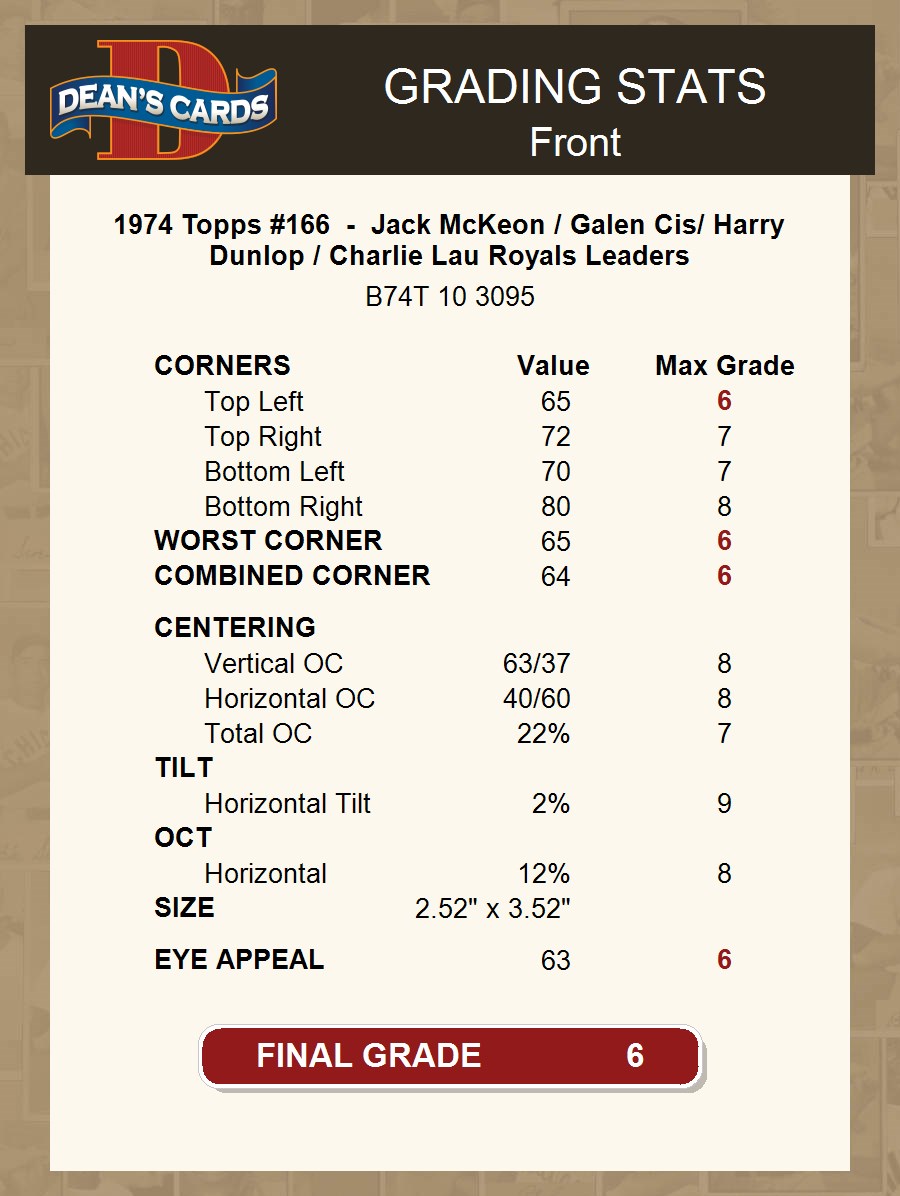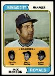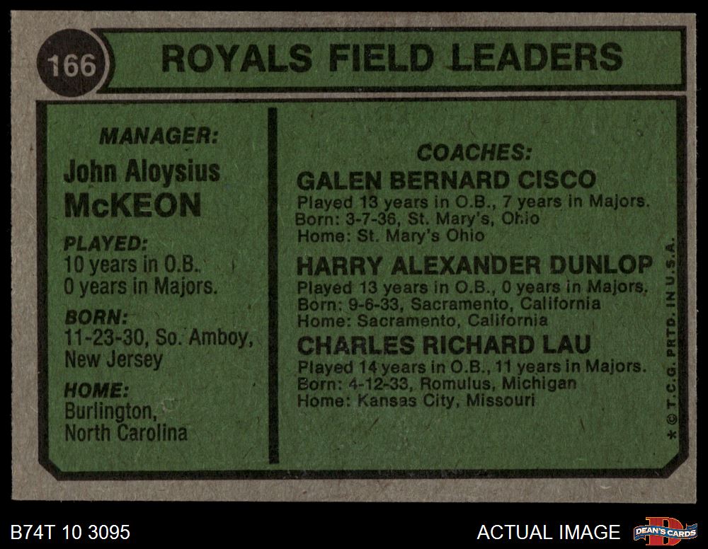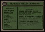 1974 Topps #166 - Jack McKeon / Galen Cis/ Harry Dunlop / Charlie Lau Royals Leaders 6 - EX/MT