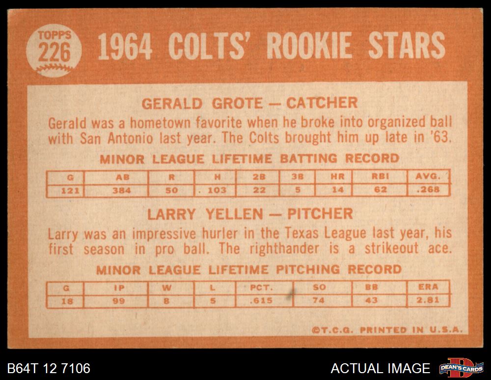 1964 Topps #226 - Jerry Grote / Larry Yellen Colt 45s Rookies 3.5 - VG+