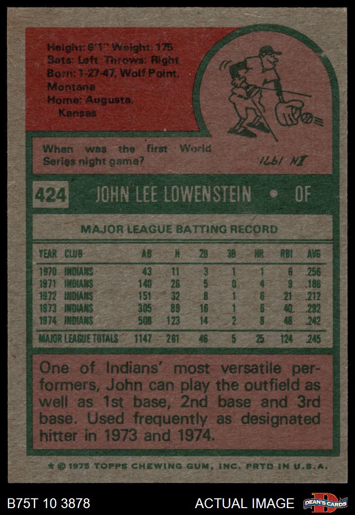 1975 Topps #424 John Lowenstein