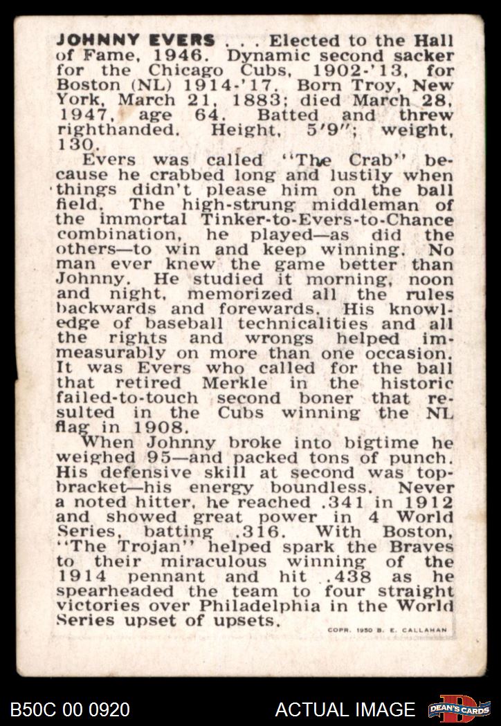 1950 Callahan Hall of Fame Johnny Evers 3 - VG