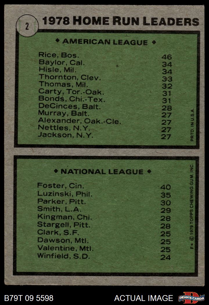1979 Topps #2 - Jim Rice / George Foster HR Leaders 3 - VG