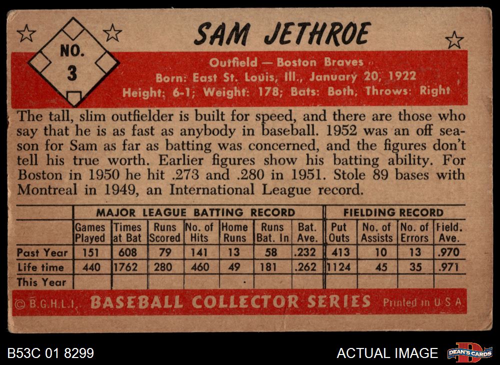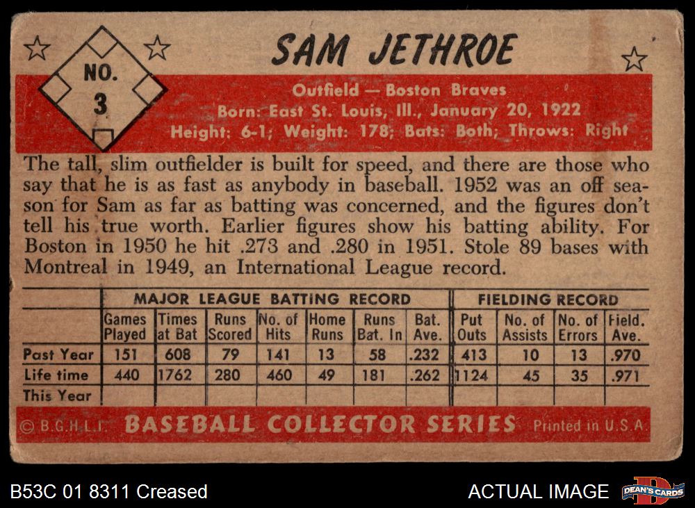 1953 Bowman #3 Sam Jethroe 2 - GOOD
