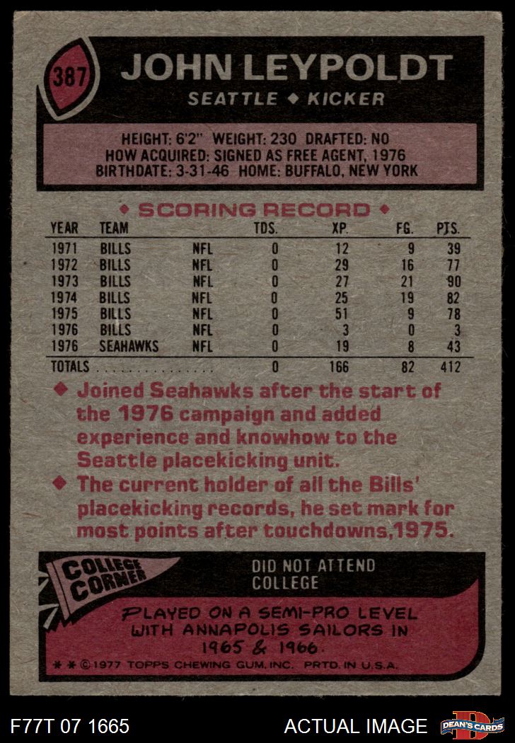 1977 Topps #387 John Leypoldt