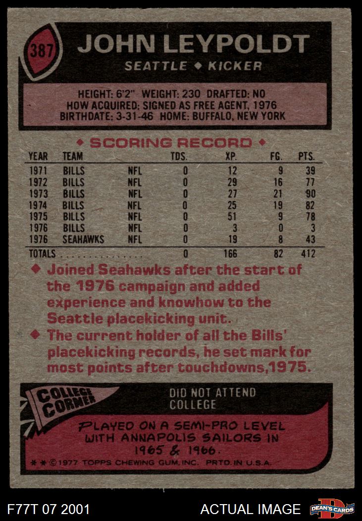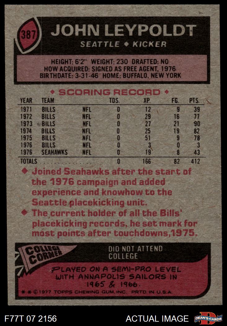 1977 Topps Football Cards (11,077 available)1977 Topps Seahawks (176 available)