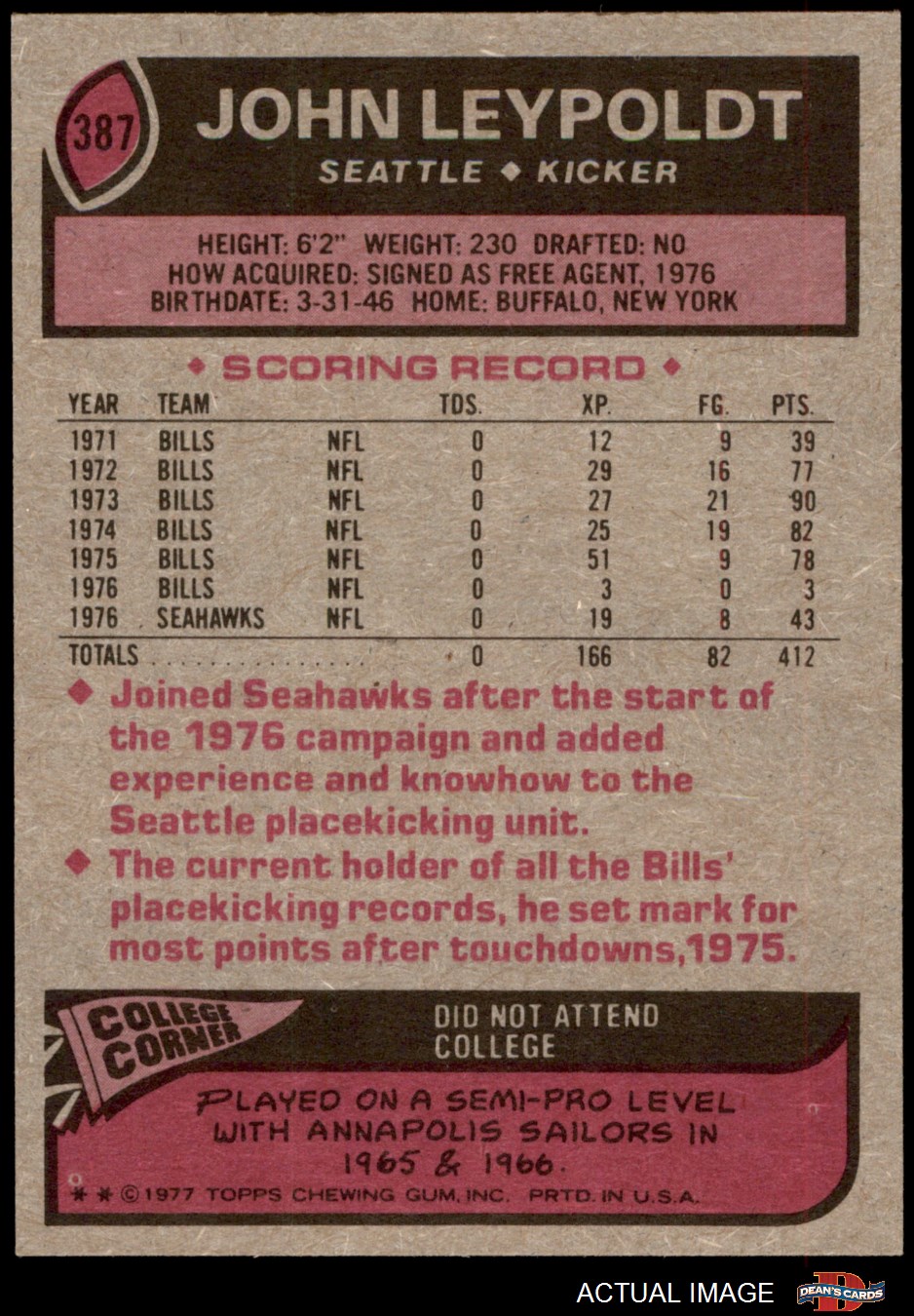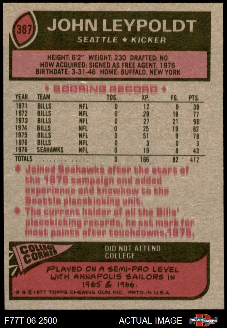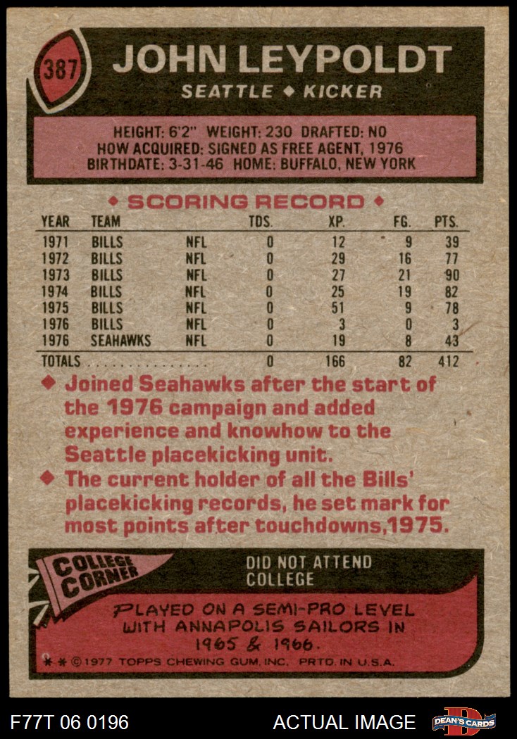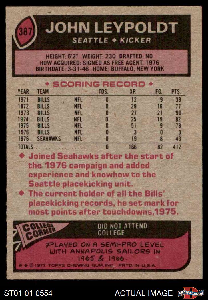 1977 Topps #387 John Leypoldt 6 - EX/MT