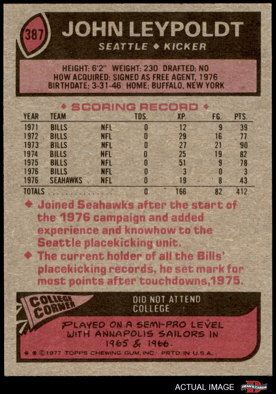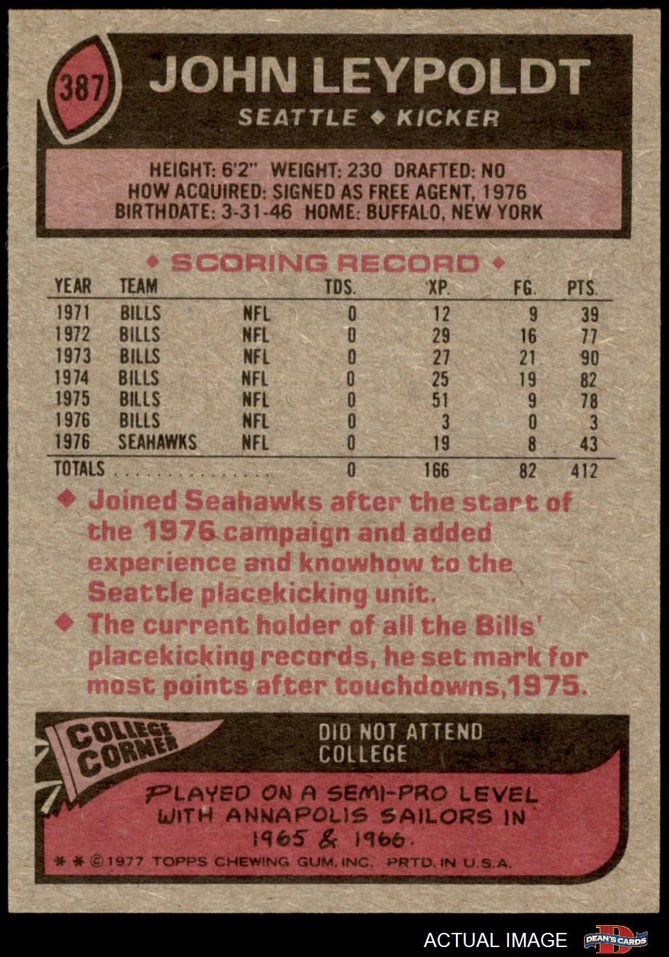 1977 Topps #387 John Leypoldt 7 - NM