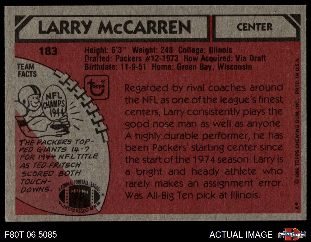 1980 Topps #183 Larry McCarren