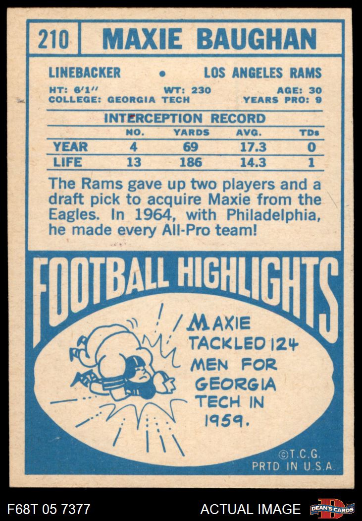 1968 Topps #210 Maxie Baughan 3 - VG