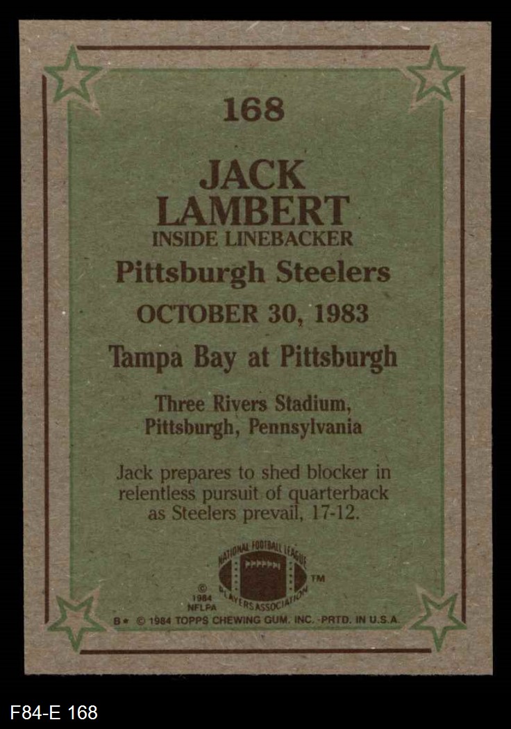1984 Topps #168 - Jack Lambert Instant Reply 8 - NM/MT