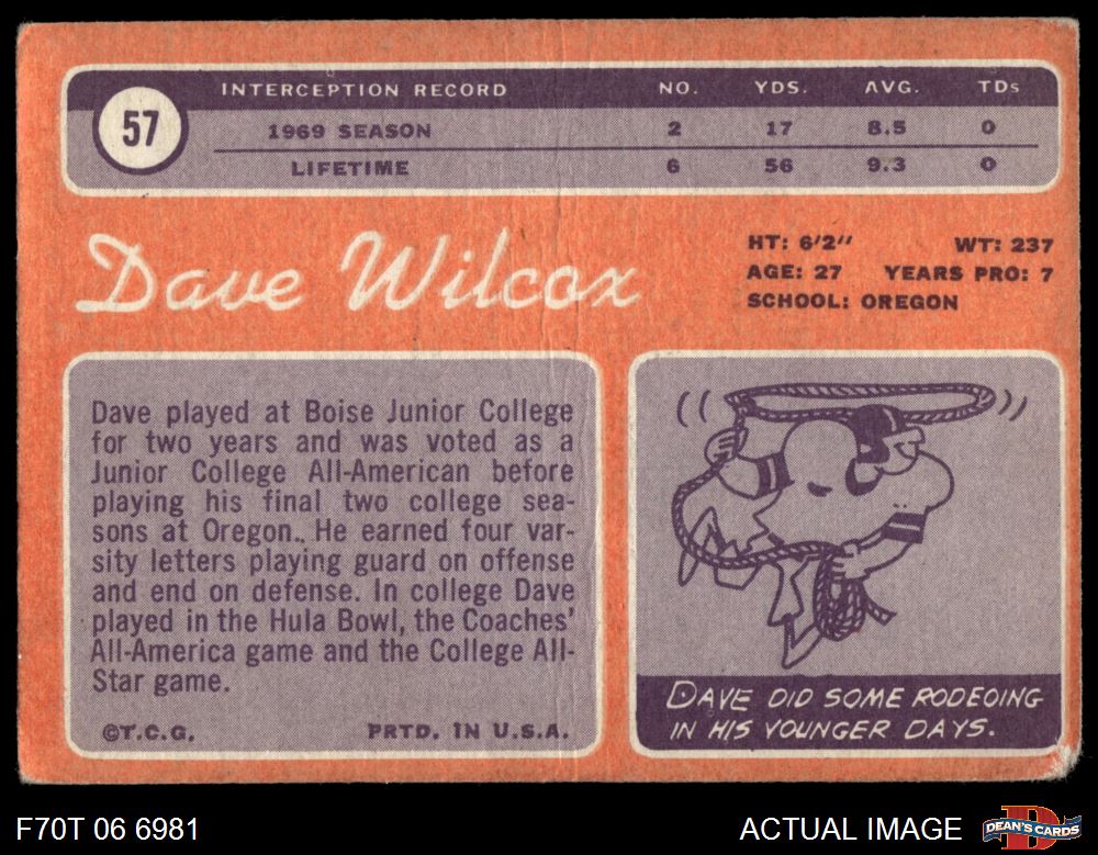 1970 Topps #57 Dave Wilcox 1 - POOR