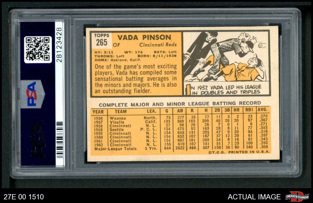 1963 Topps #265 Vada Pinson PSA 6 - EX/MT