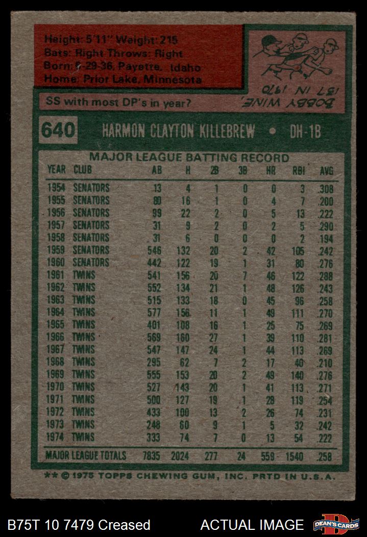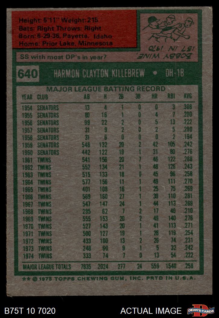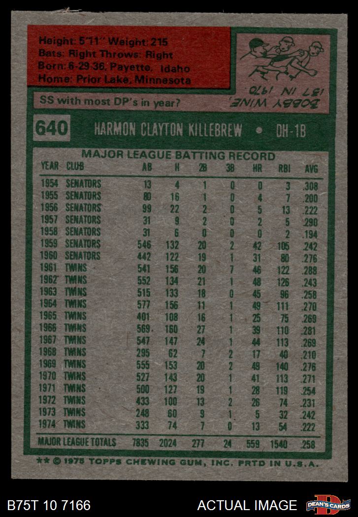 1975 Topps #640 Harmon Killebrew