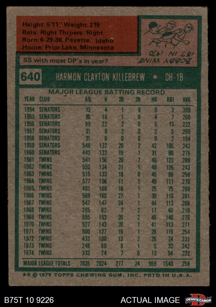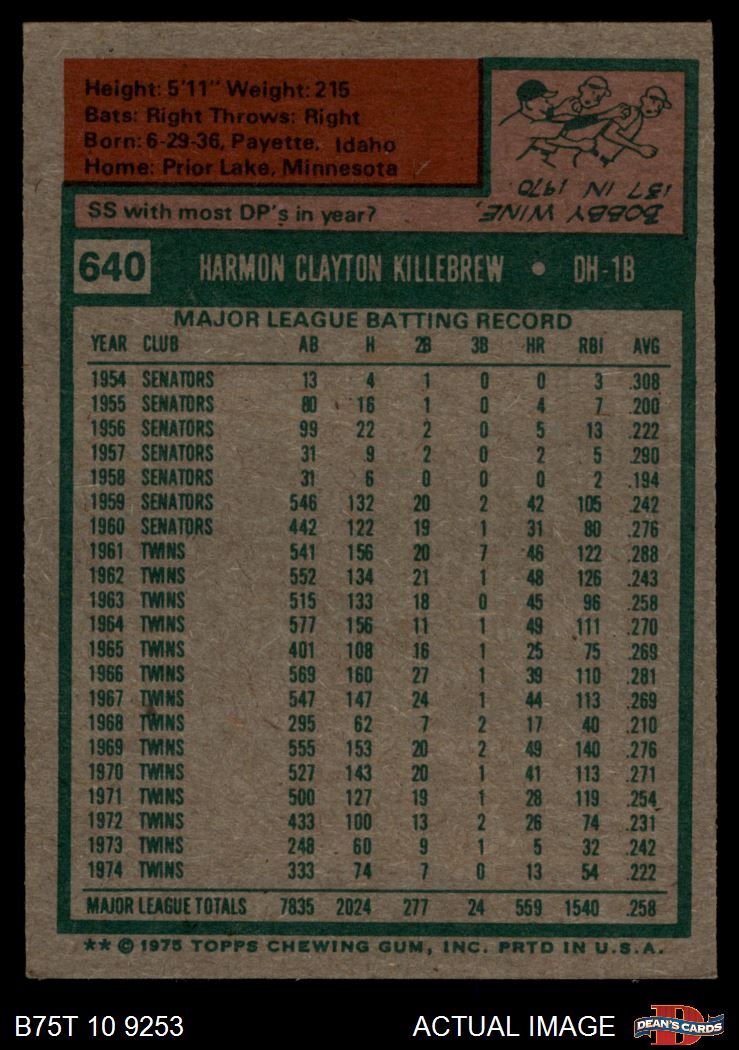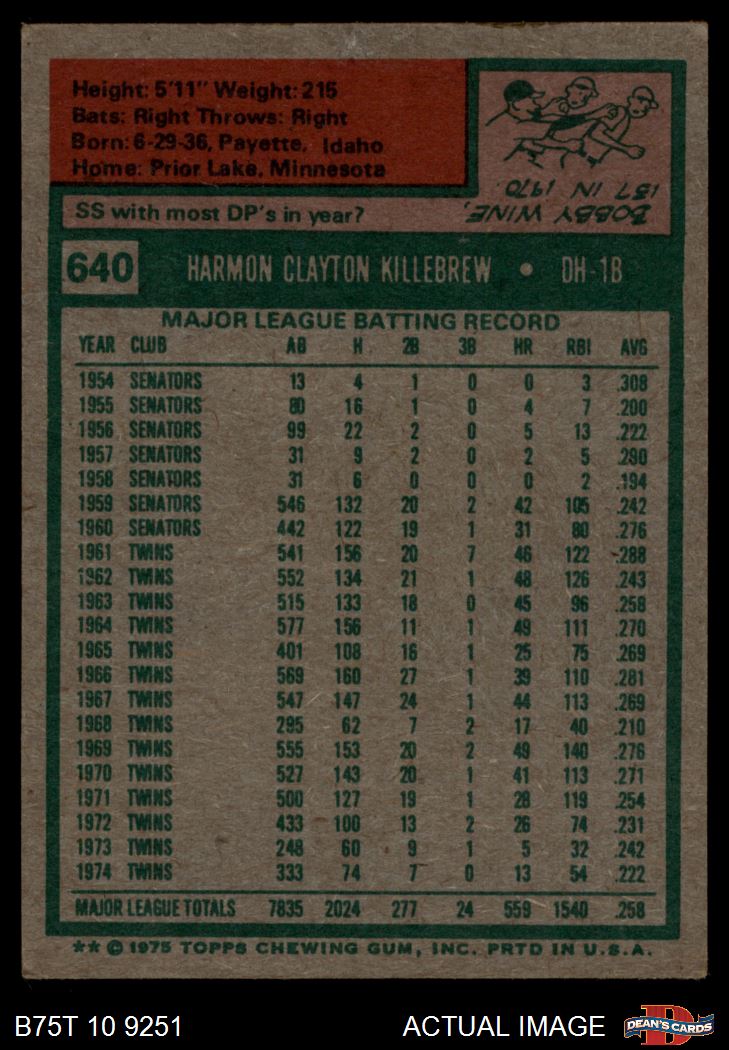 1975 Topps #640 Harmon Killebrew 4 - VG/EX
