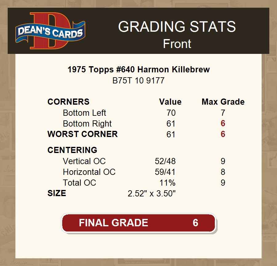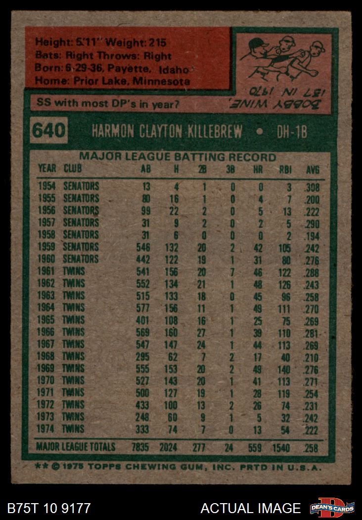 1975 Topps #640 Harmon Killebrew 6 - EX/MT