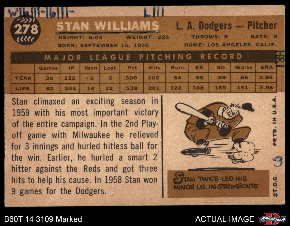 1960 Topps #278 Stan Williams 1.5 - FAIR