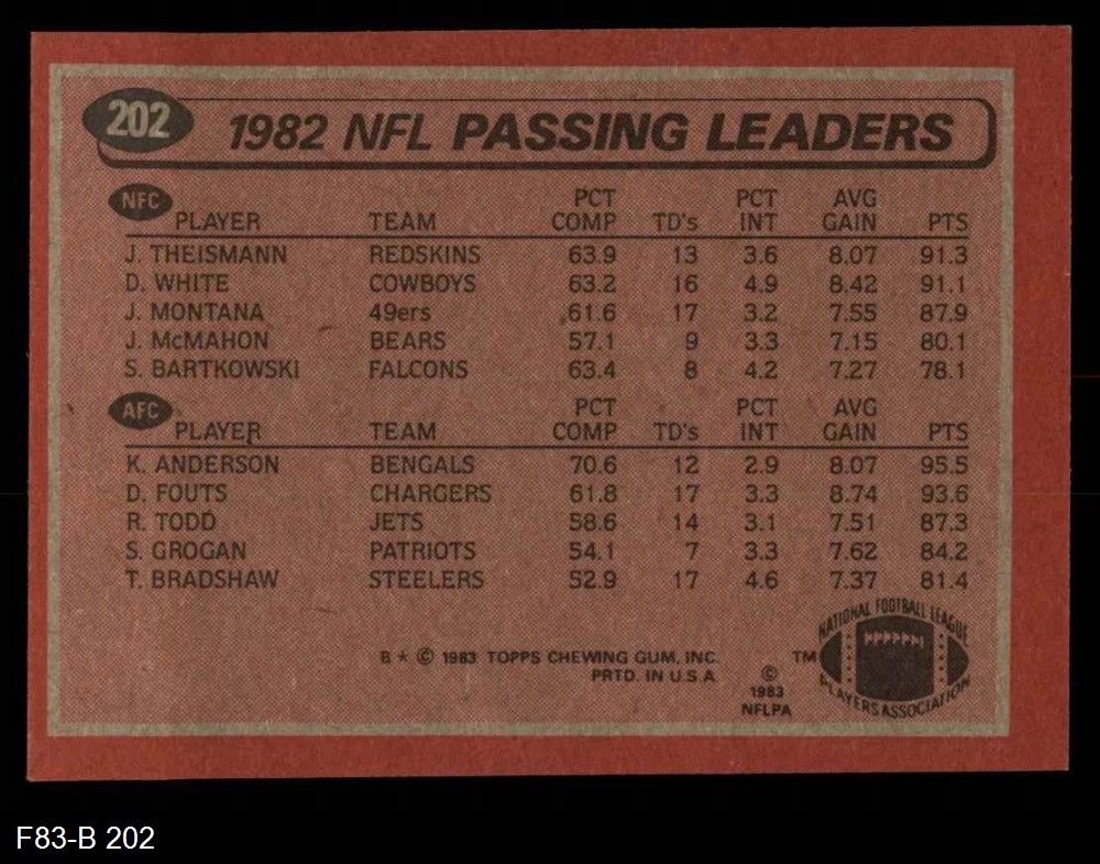 1983 Topps #202 - Joe Theismann / Ken Anderson Passing Leaders 8 - NM/MT
