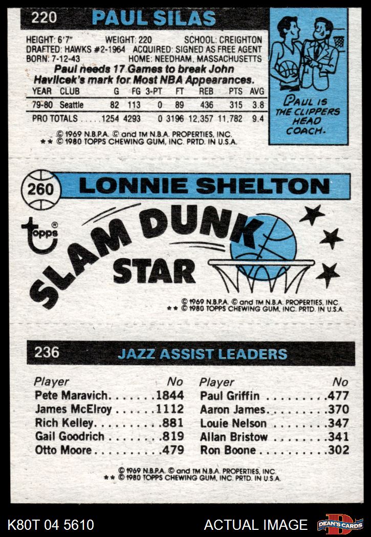 1980 Topps - Allan Bristow / Lonnie Shelton / Paul Silas 236 / 260 / 220 3 - VG