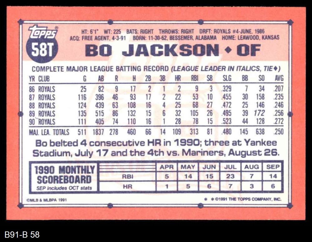 1991 Topps Traded #58 T Bo Jackson 8 - NM/MT