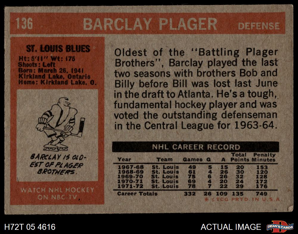 1972 Topps #136 Barclay Plager 5.5 - EX+