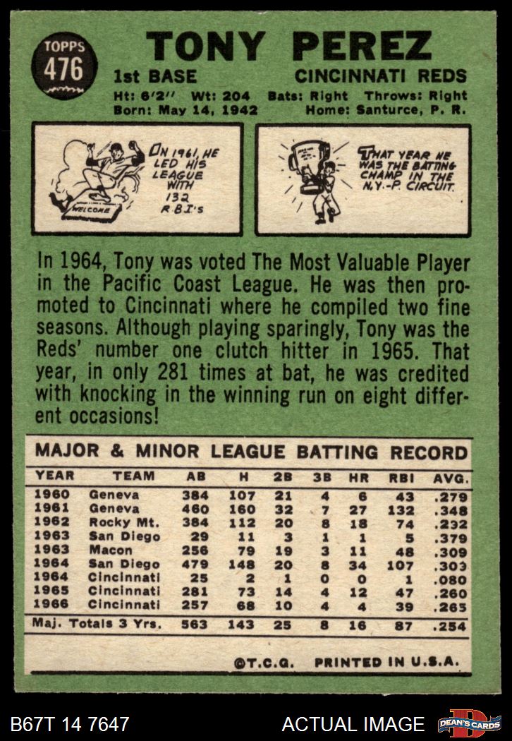 1967 Topps #476 Tony Perez 5 - EX