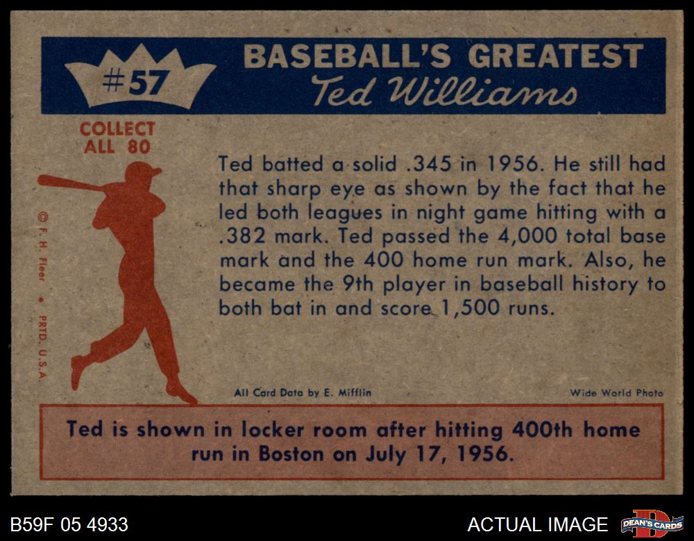 1959 Fleer #57 - Ted Williams 400th Homer 7 - NM