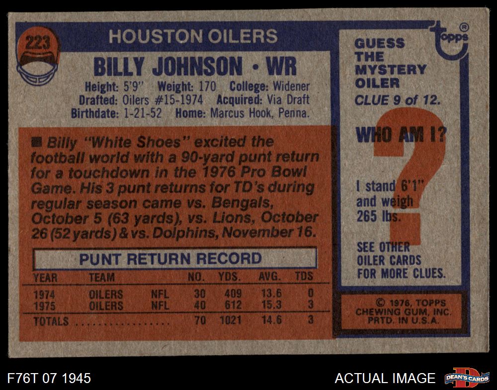 1976 Topps Football Cards (7,468 available)1976 Topps Oilers (305 available)