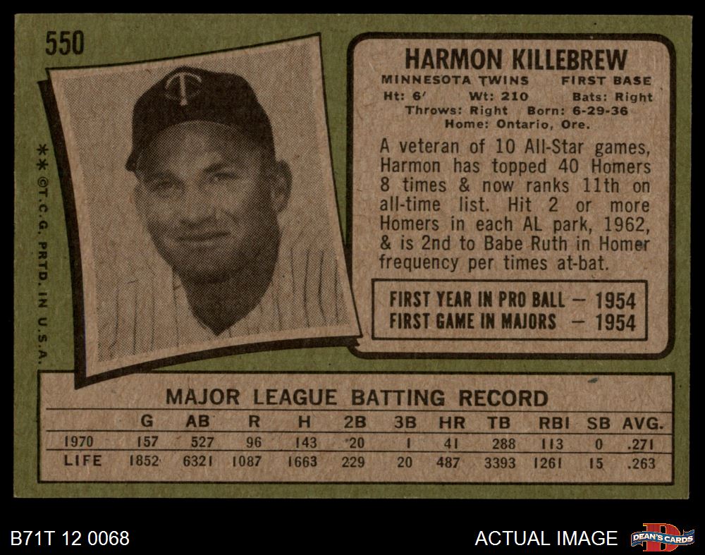 1971 Topps #550 Harmon Killebrew 5 - EX