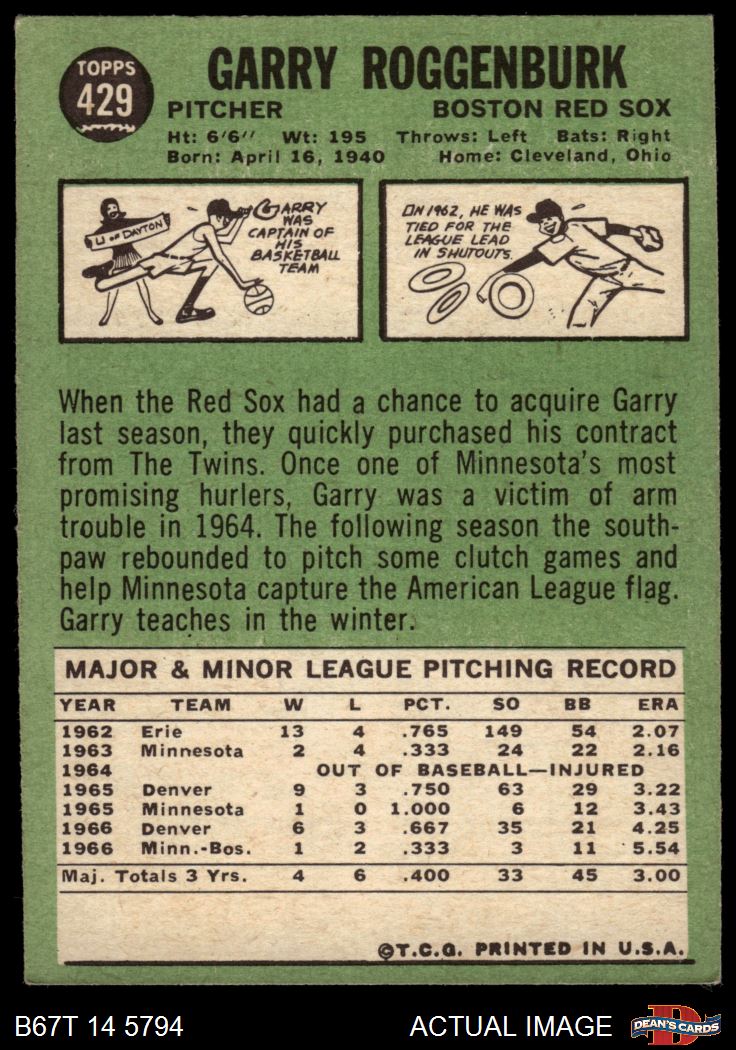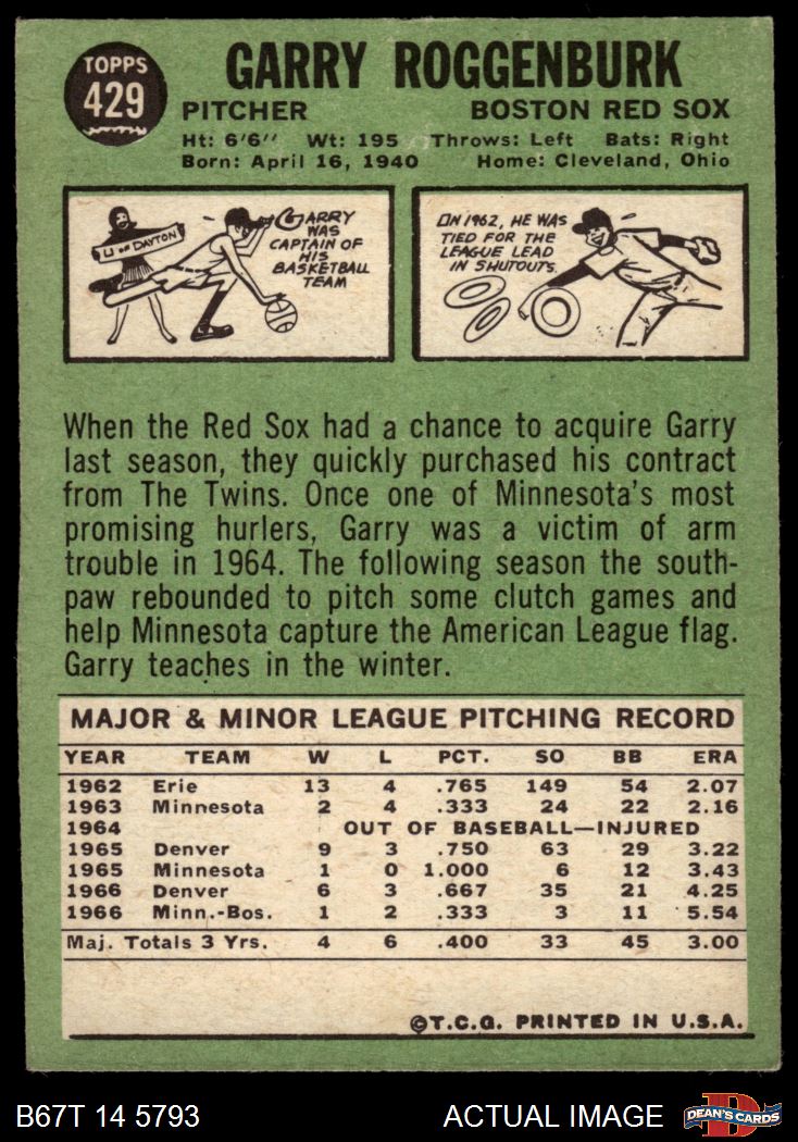 1967 Topps #429 Garry Roggenburk 4 - VG/EX