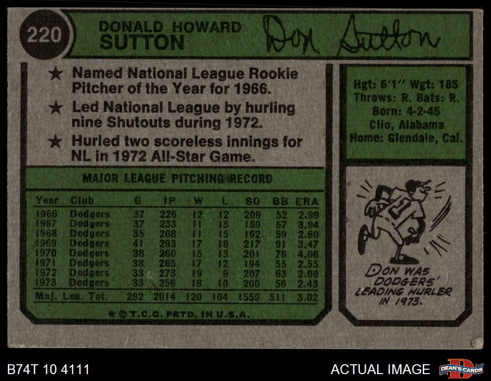 1974 Topps #220 Don Sutton 2 - GOOD