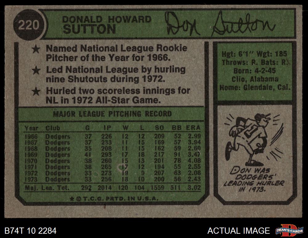 1974 Topps #220 Don Sutton 6 - EX/MT