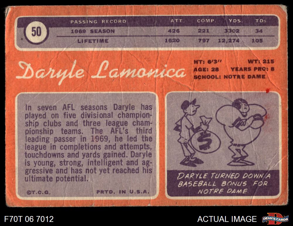 1970 Topps #50 Daryle Lamonica AUTHENTIC