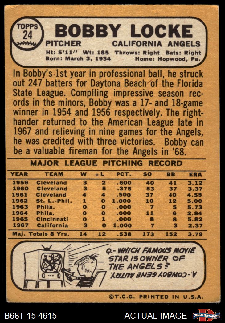 1968 Topps #24 A Bobby Locke 4 - VG/EX