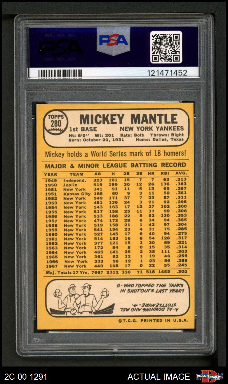 1968 Topps #280 Mickey Mantle PSA 6.5 - EX/MT+
