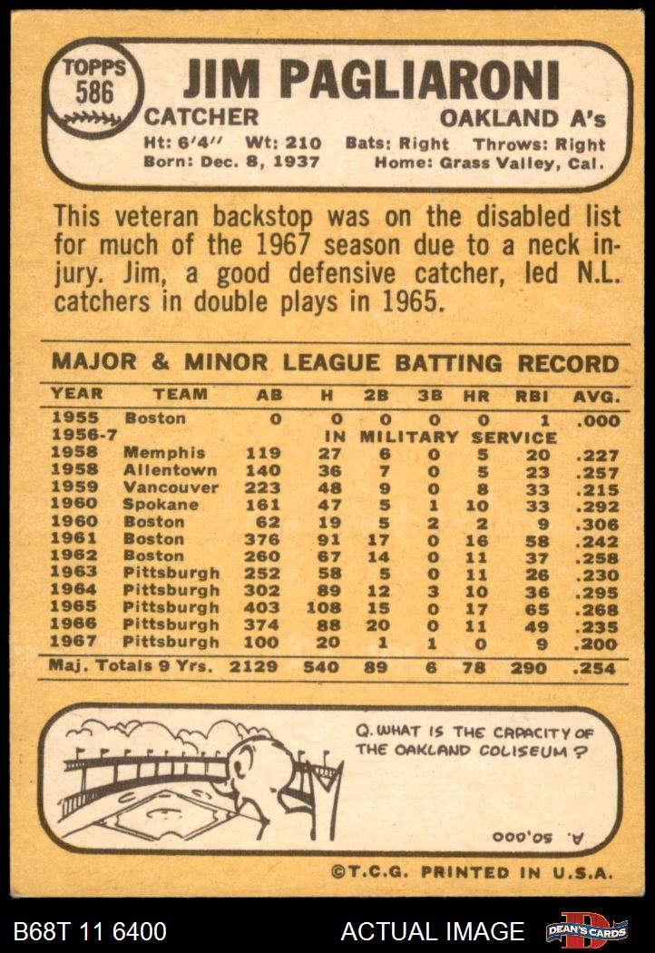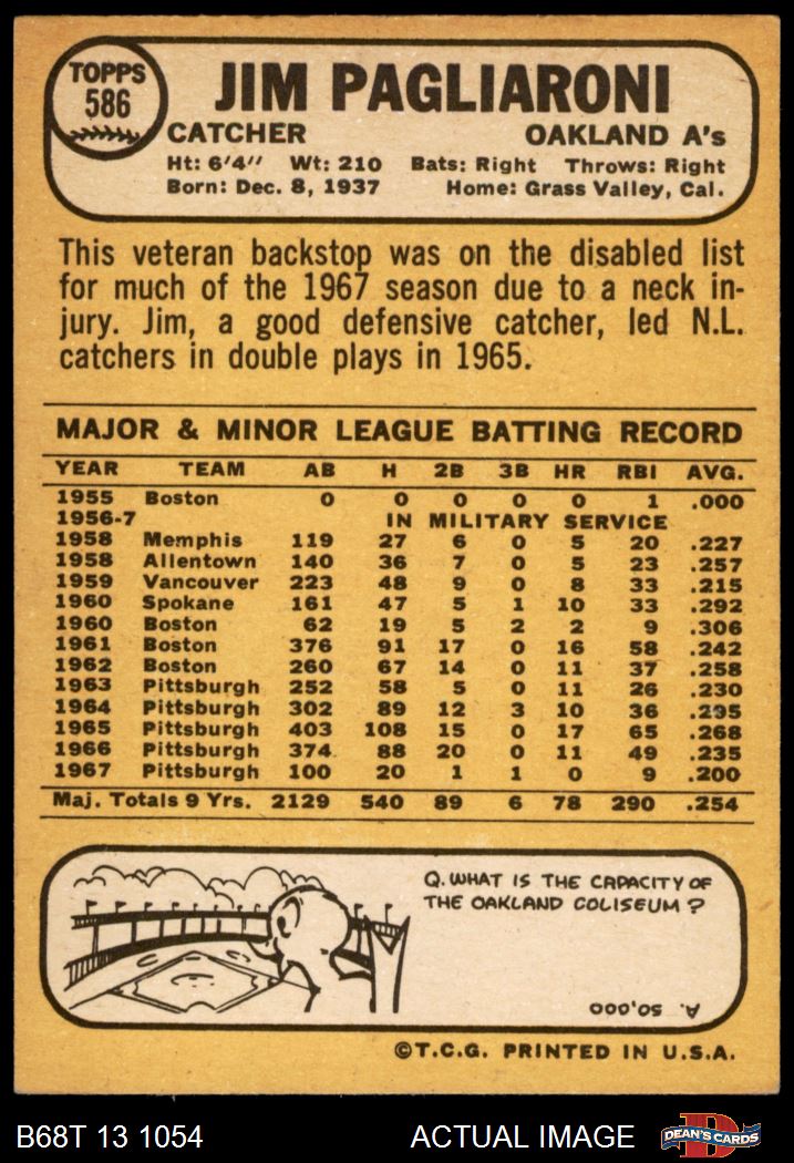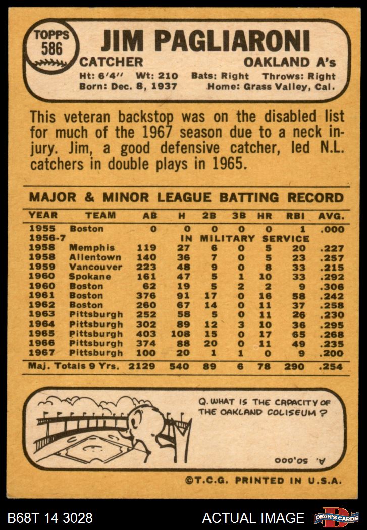 1968 Topps #586 Jim Pagliaroni Front Thumbnail