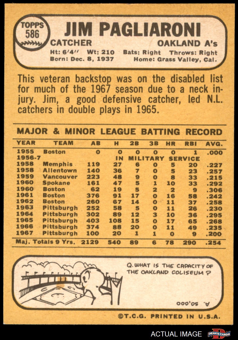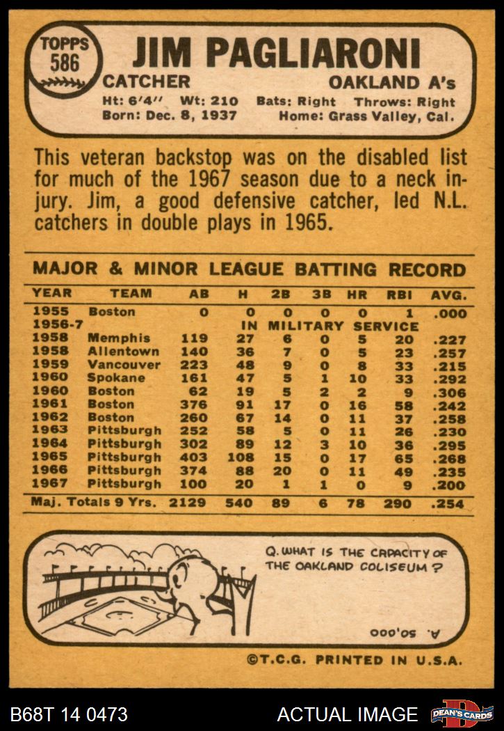1968 Topps #586 Jim Pagliaroni Front Thumbnail
