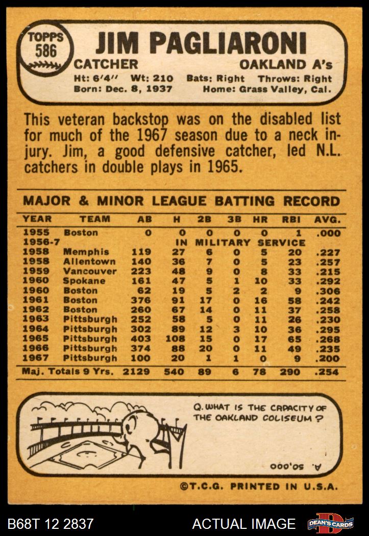 1968 Topps #586 Jim Pagliaroni 8 - NM/MT