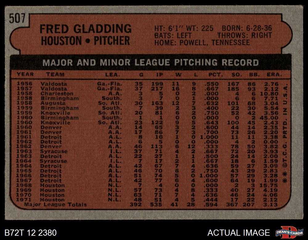 1972 Topps #507 Fred Gladding 3 - VG