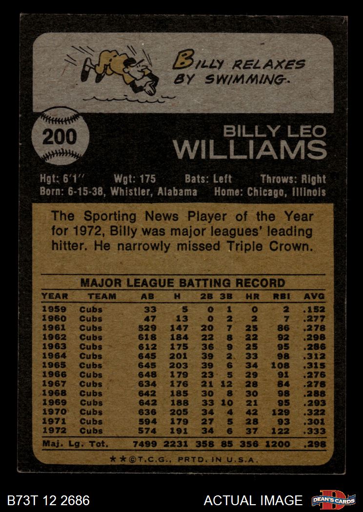 1973 Topps #200 Billy Williams 4 - VG/EX