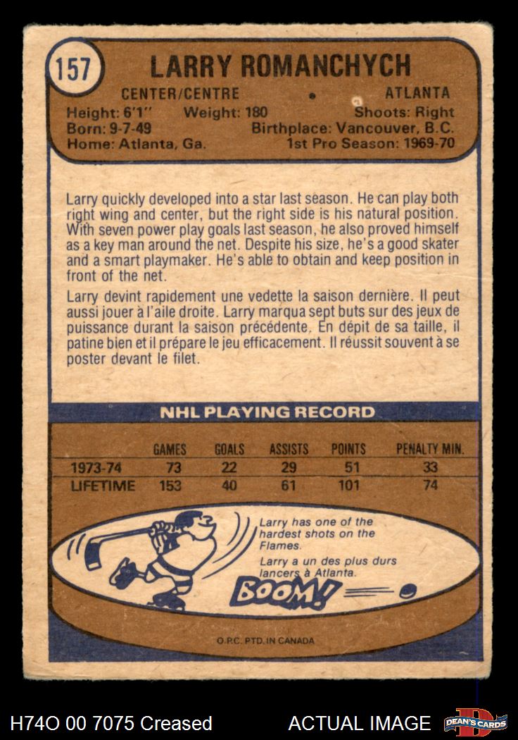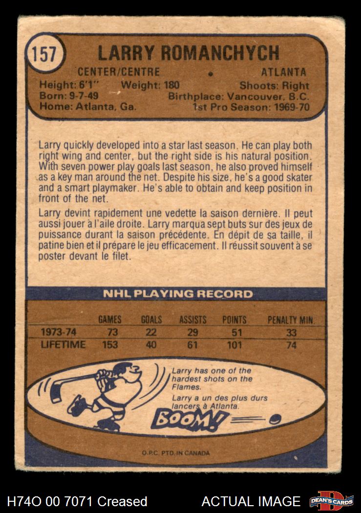 1974 O-Pee-Chee NHL #157 Larry Romanchych 2 - GOOD